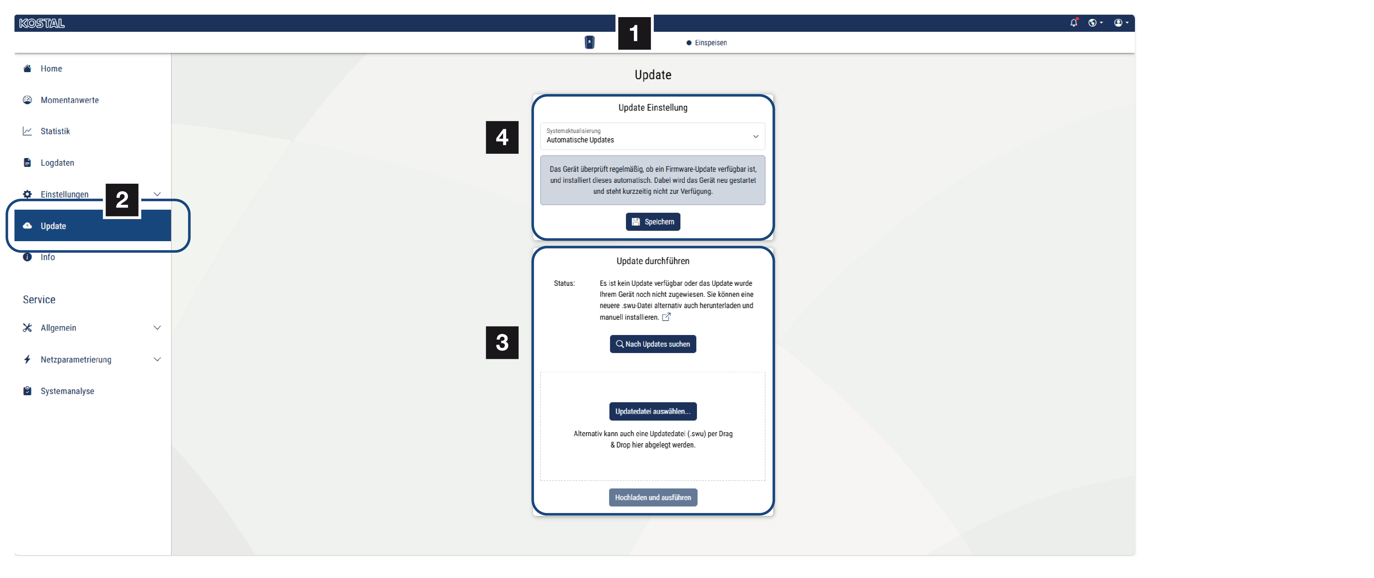 - Wählen Sie den Menüpunkt Update im Webserver aus.