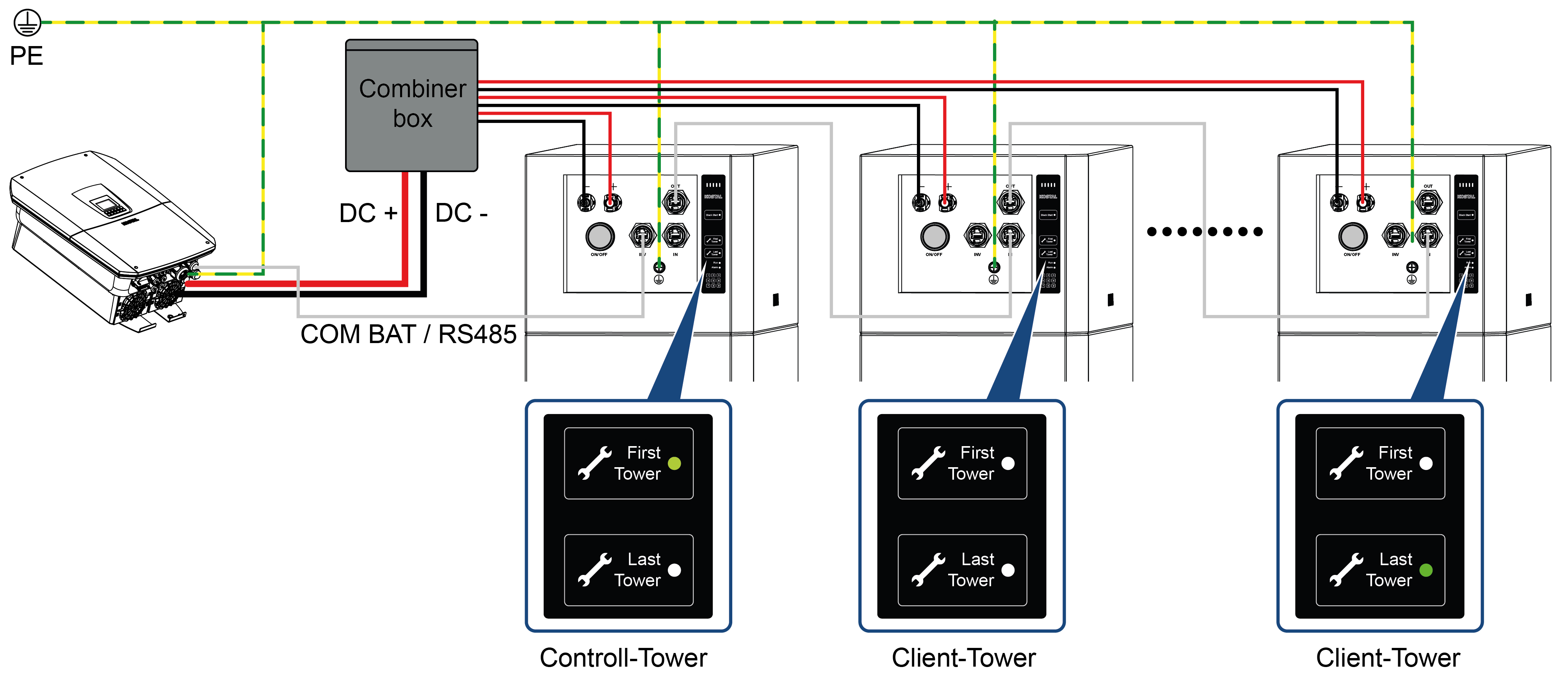 - Ühendage iga torni PE-kaabel PE-üldsiiniga.