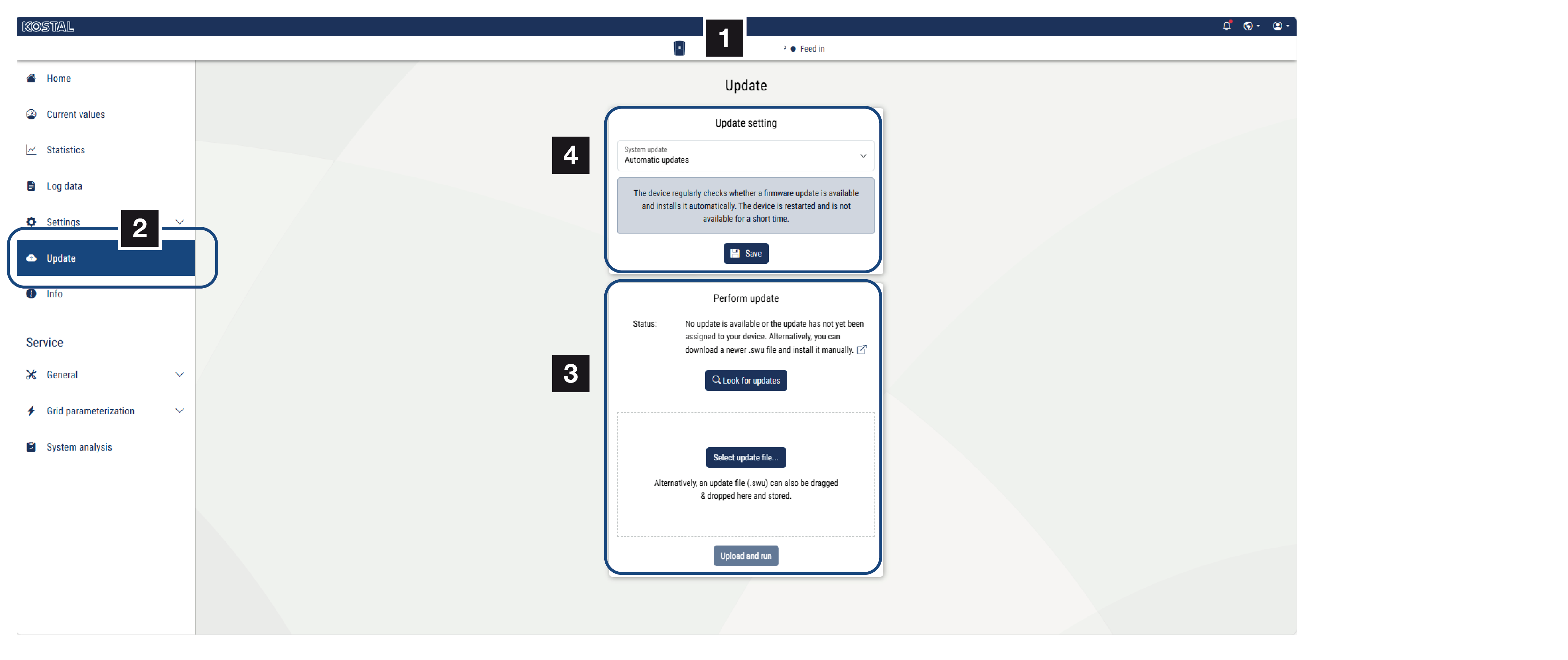 - Päivitä akun ohjelmisto kohdasta Etsi päivityksiä, tai valitse nykyinen päivitystiedosto .bin-muodossa tietokoneeltasi kohdasta Valitse päivitystiedosto. Ajankohtaiset päivitykset ovat kotisivuillamme tuotteen ladattavien tiedostojen alueella kohdassa Ohjelmisto ja päivitykset.