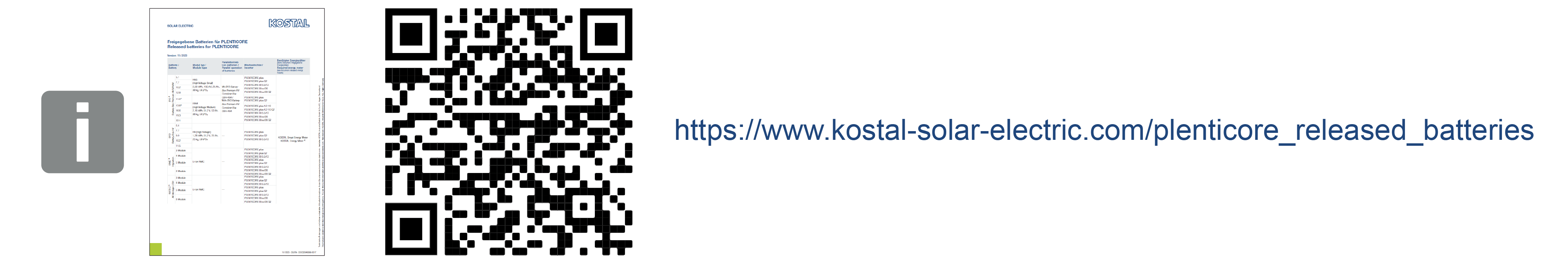 No documento Baterias aprovadas da KOSTAL, encontrará os inversores que foram aprovados para esta bateria. Para além disso, encontra informações sobre a ligação da comunicação ao inversor. Encontrará o documento na área de transferências referente ao inversor.