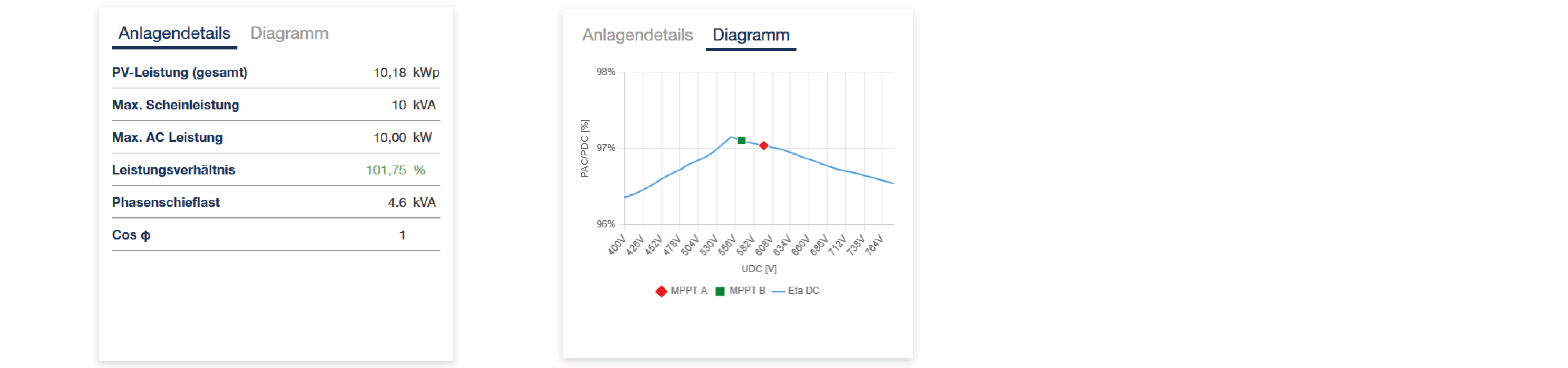 Sie können bei der Ansicht zwischen den Anlagendetails oder dem MPPT-Diagramm umschalten.