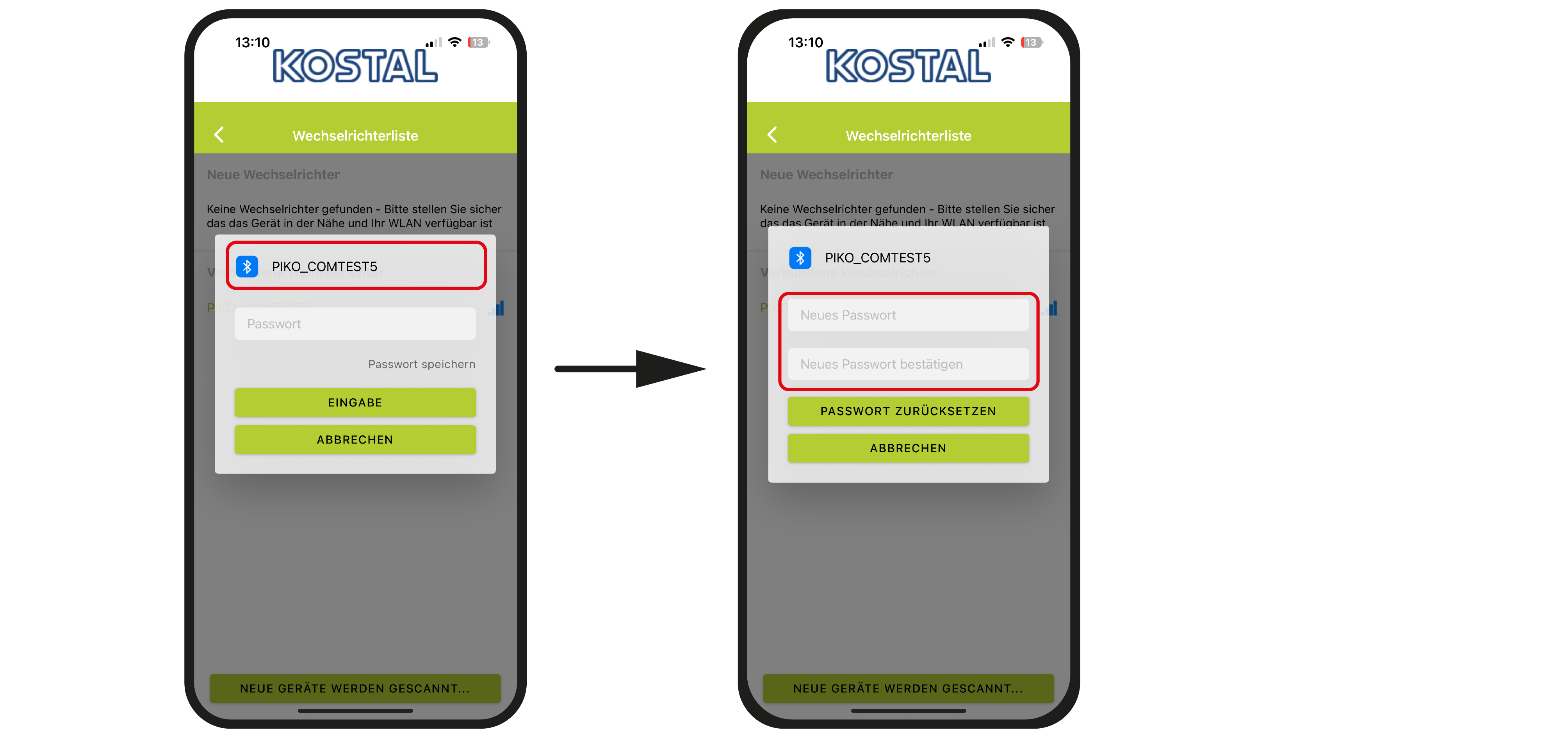 Wechselrichter mit KOSTAL PIKO CI App verbinden über Bluetooth