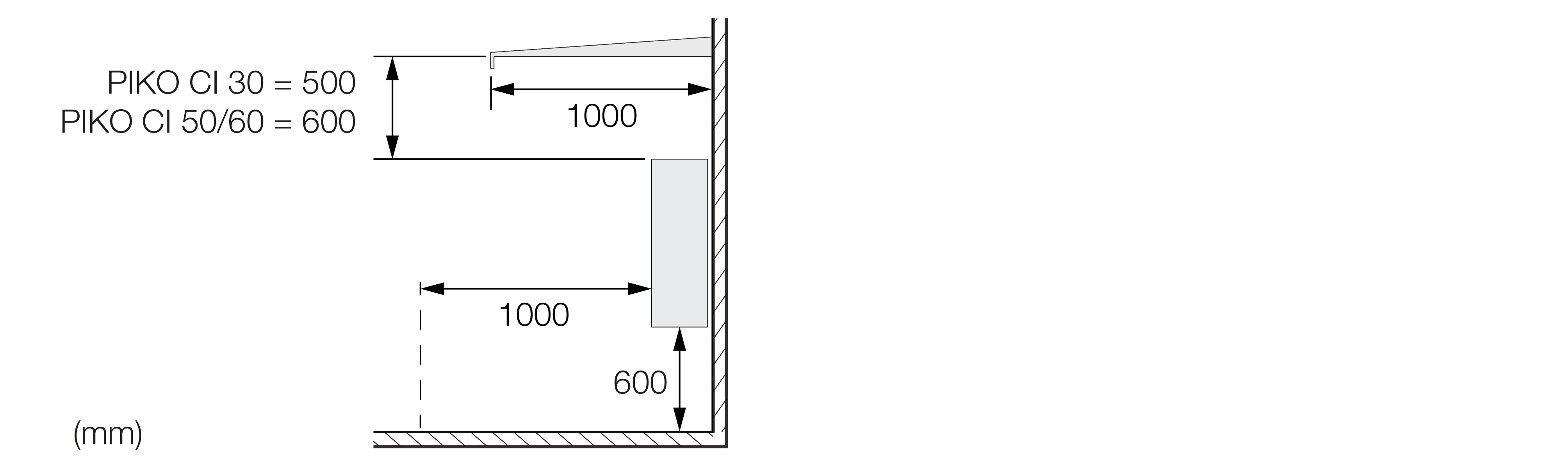 - Den Freiraum um den Wechselrichter unbedingt einhalten, damit die Kühlung des Wechselrichters gegeben ist.