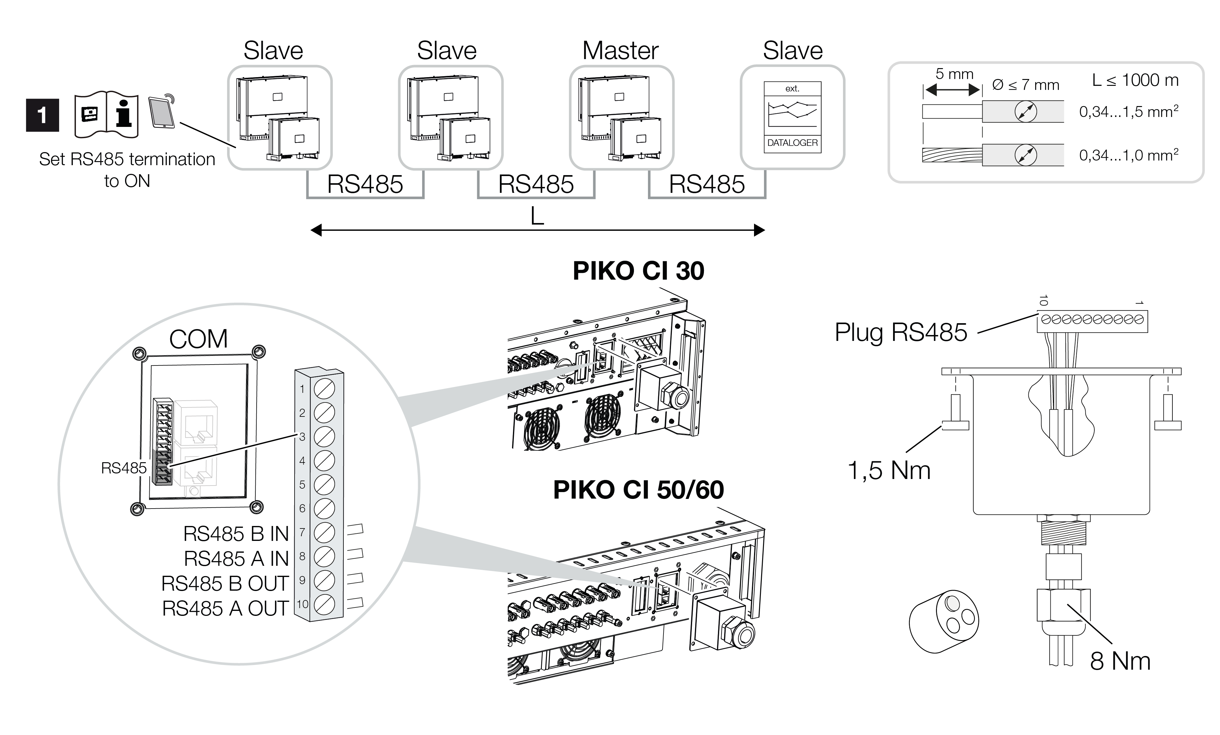 1 | RS485-Terminierung am letzten Wechselrichter aktivieren. |