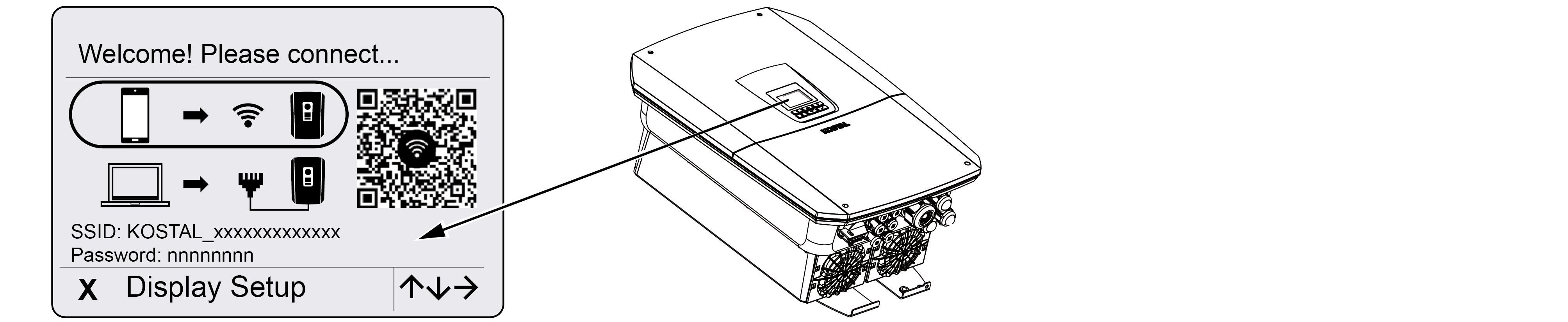 - Drücken Sie X am Wechselrichter, um mit der Installation über das Display zu starten.