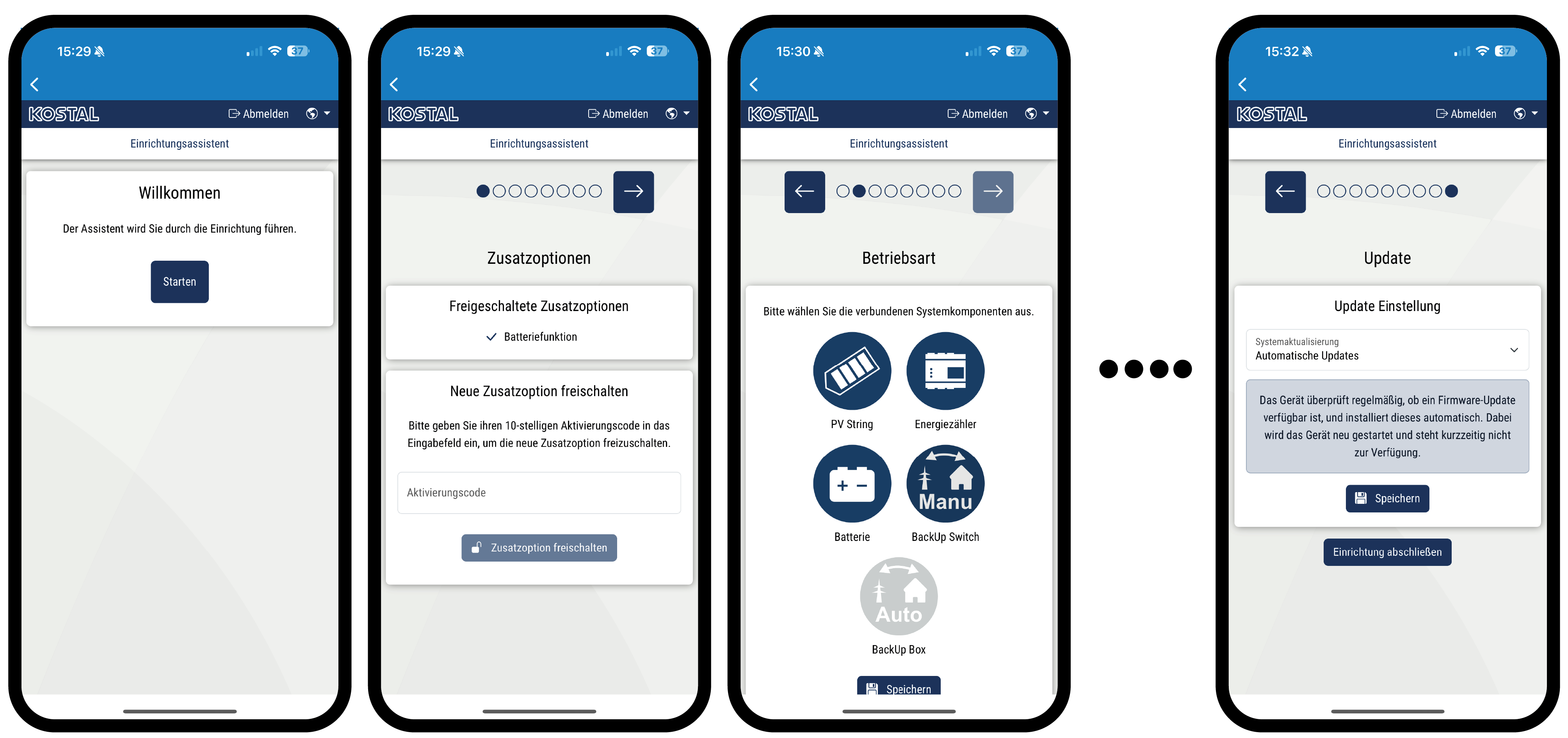 Einrichtungsassistent über KOSTAL Solar App