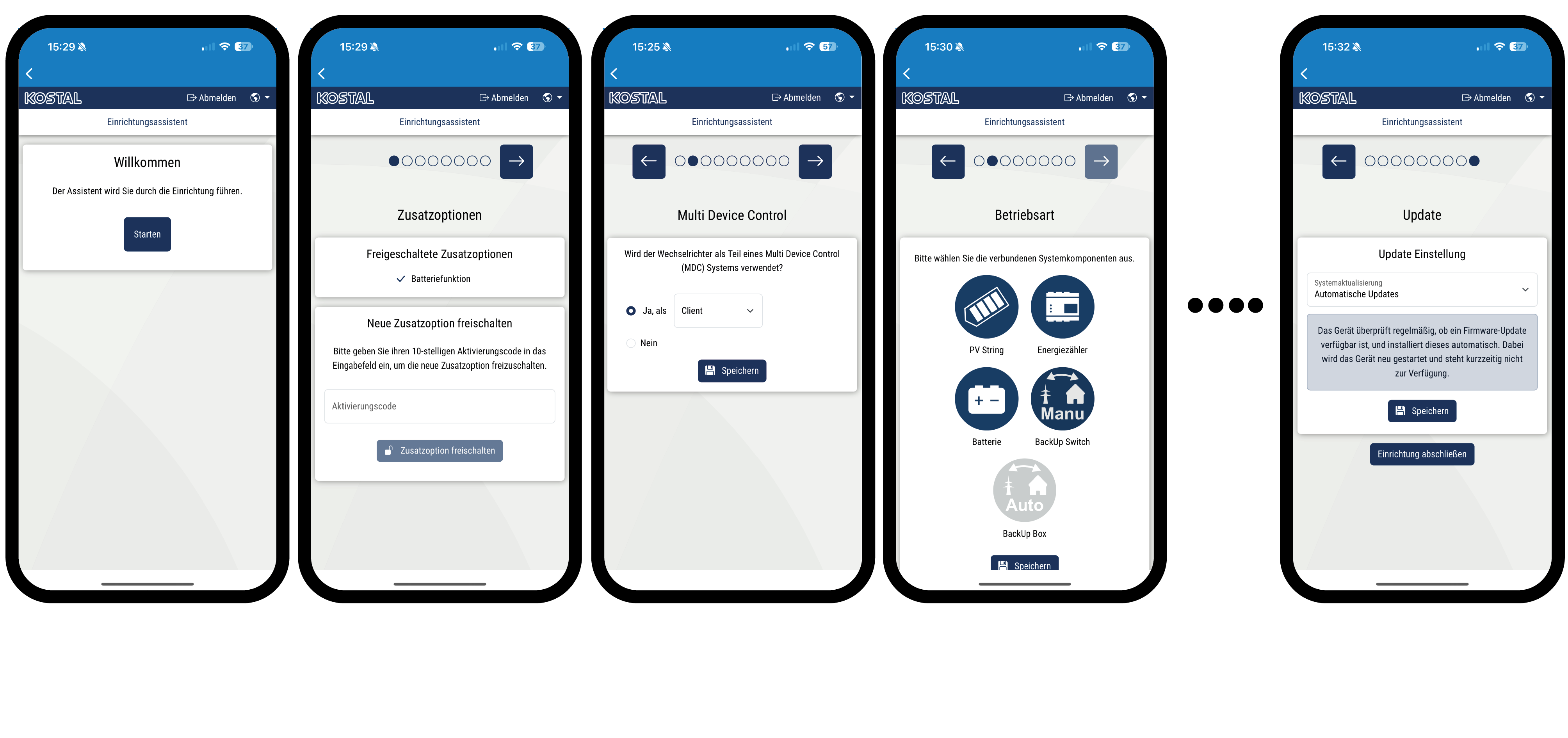 Vorab mit der KOSTAL Solar App gekaufte und empfangene Aktivierungscodes werden automatisch an den Wechselrichter übertragen und können bei der Ersteinrichtung verwendet werden.