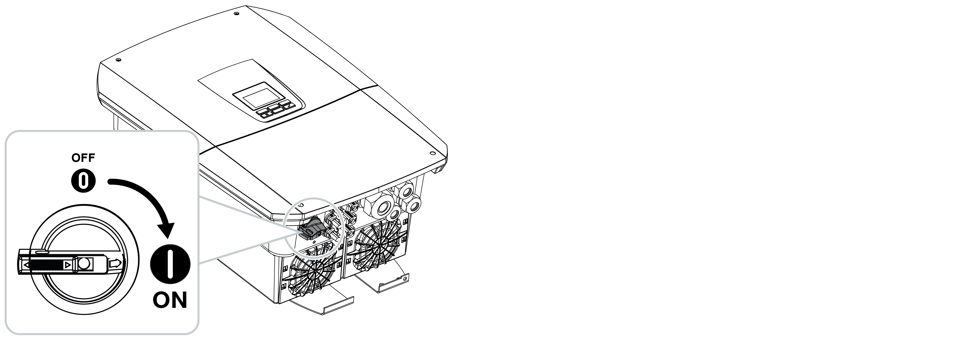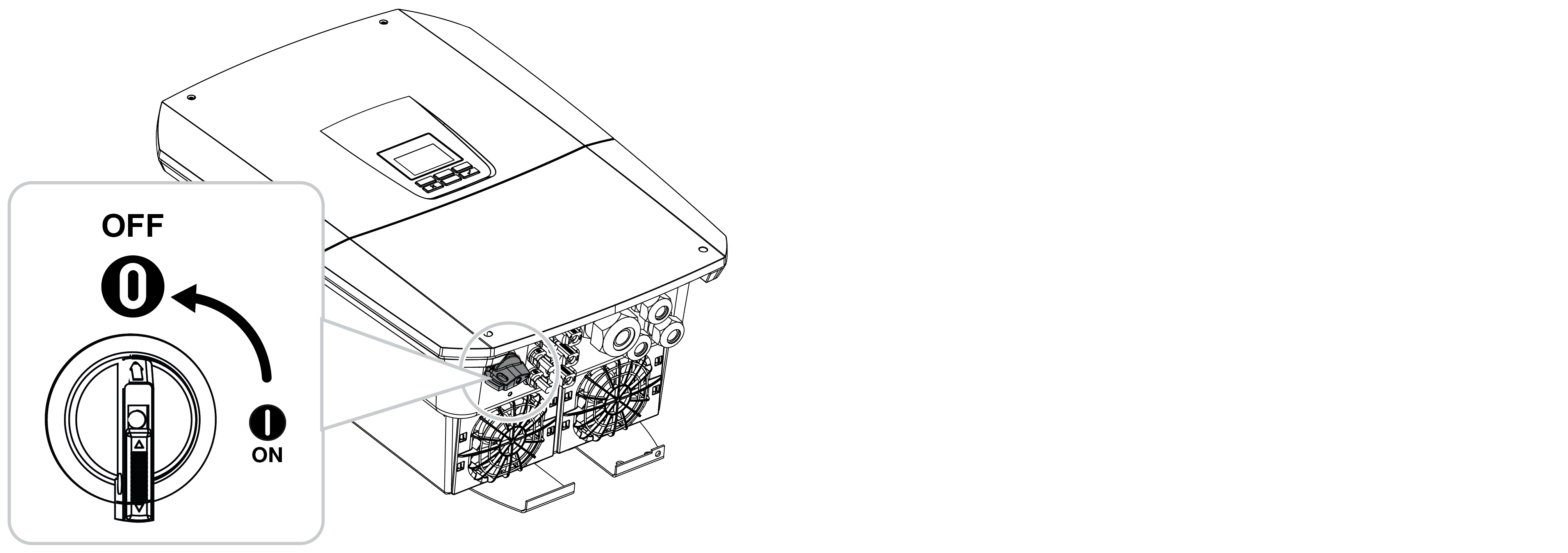 Über den DC-Trennschalter kann der Wechselrichter ein- und ausgeschaltet werden. Der Trennschalter kann außerdem verriegelt werden.