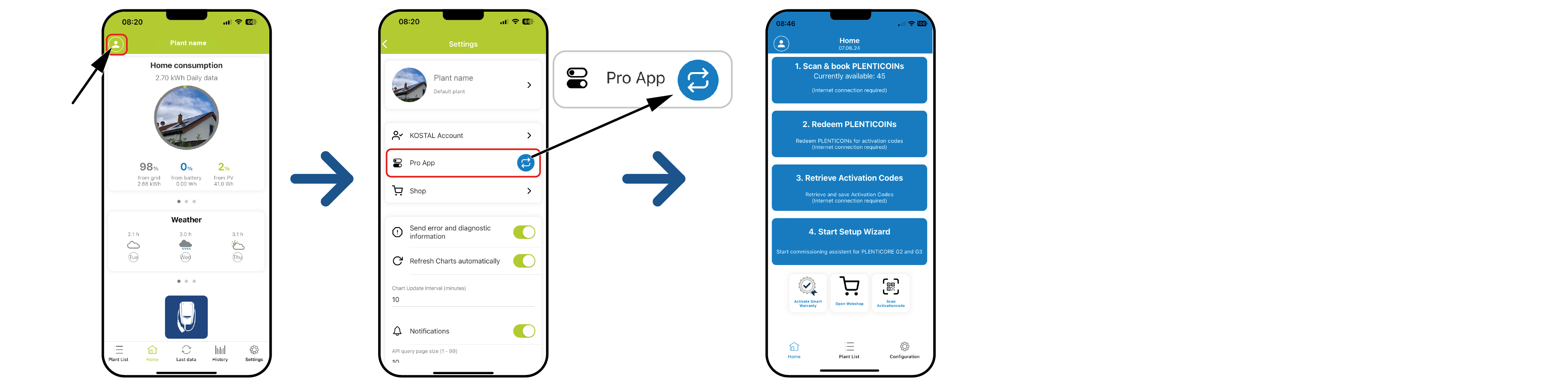 - In the KOSTAL Solar App, switch to Pro mode.