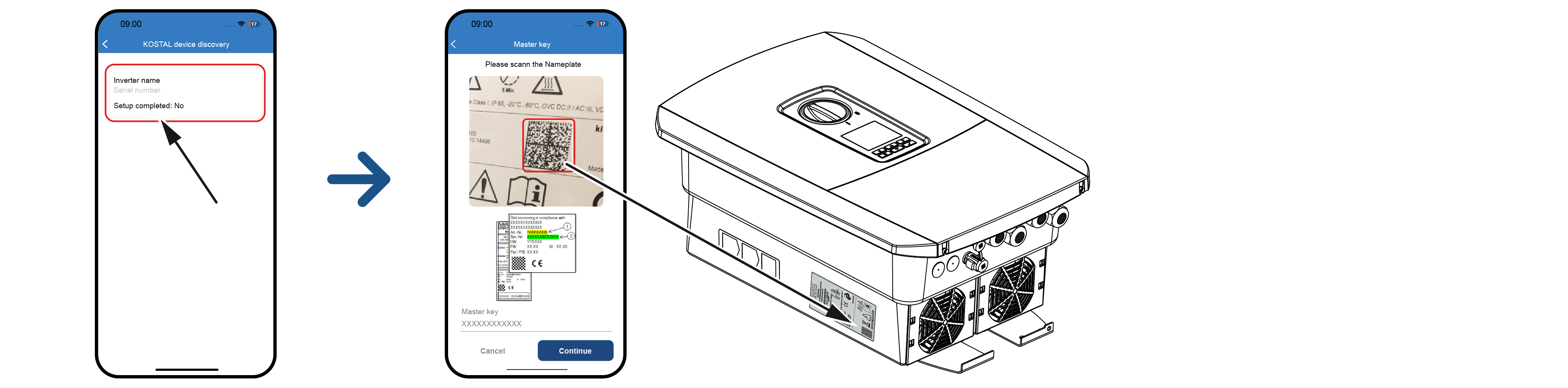 - Tagad nolasiet QR kodu no invertora tipa plāksnītes un nospiediet Turpināt.