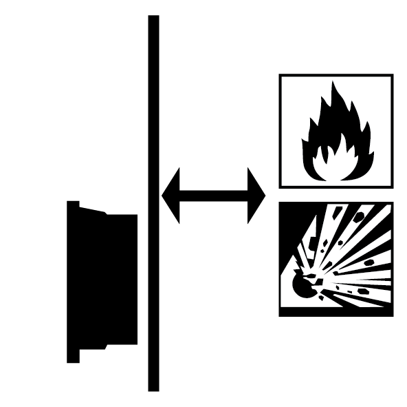 | Zachować bezpieczną odległość od materiałów palnych i stref zagrożonych wybuchem w otoczeniu. |
