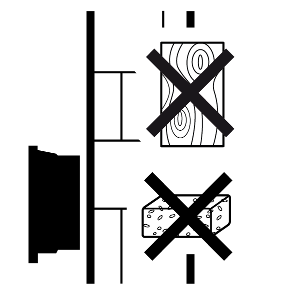 | Falownik zamontować na stabilnej powierzchni montażowej o nośności odpowiedniej do masy falownika. Ściany z płyt kartonowo-gipsowych i powierzchnie deskowane są niedozwolone. |
