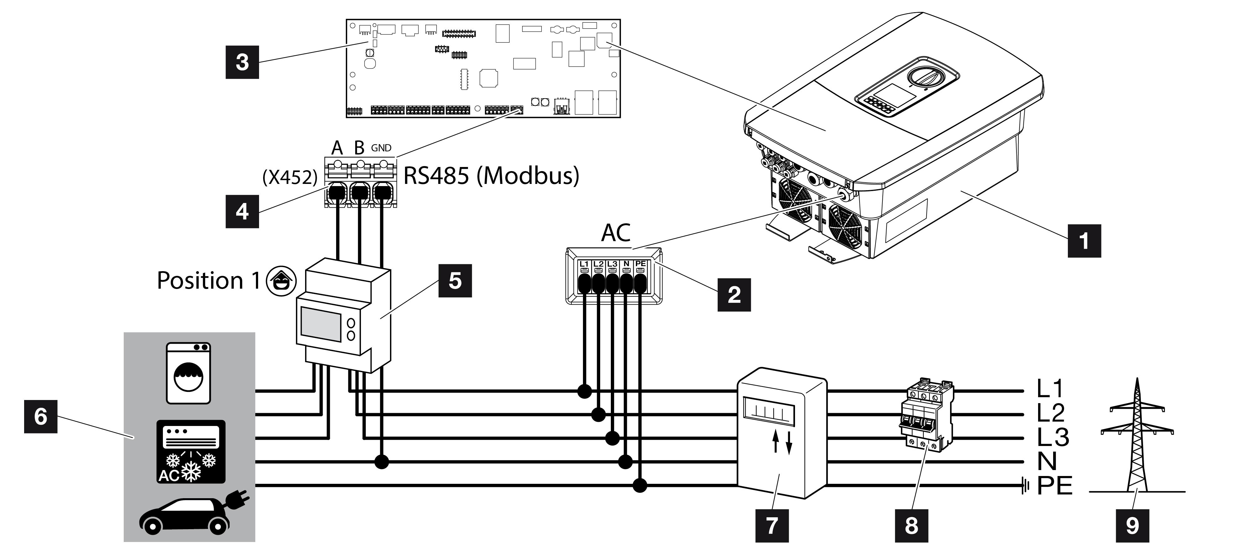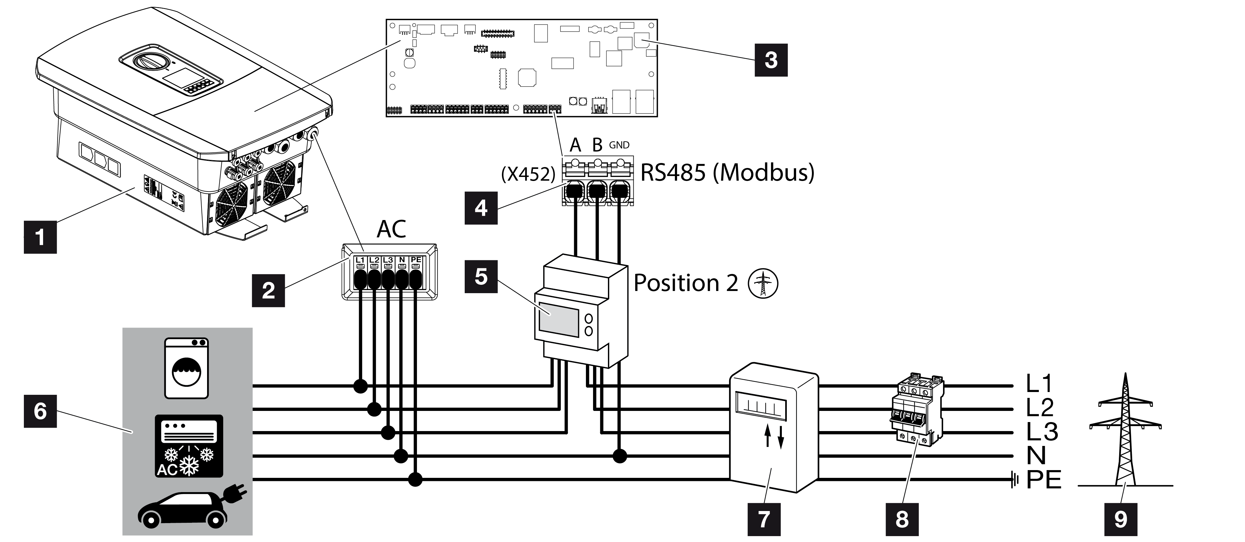Schemat podłączenia licznika energii – przyłącze sieciowe (pozycja 2)