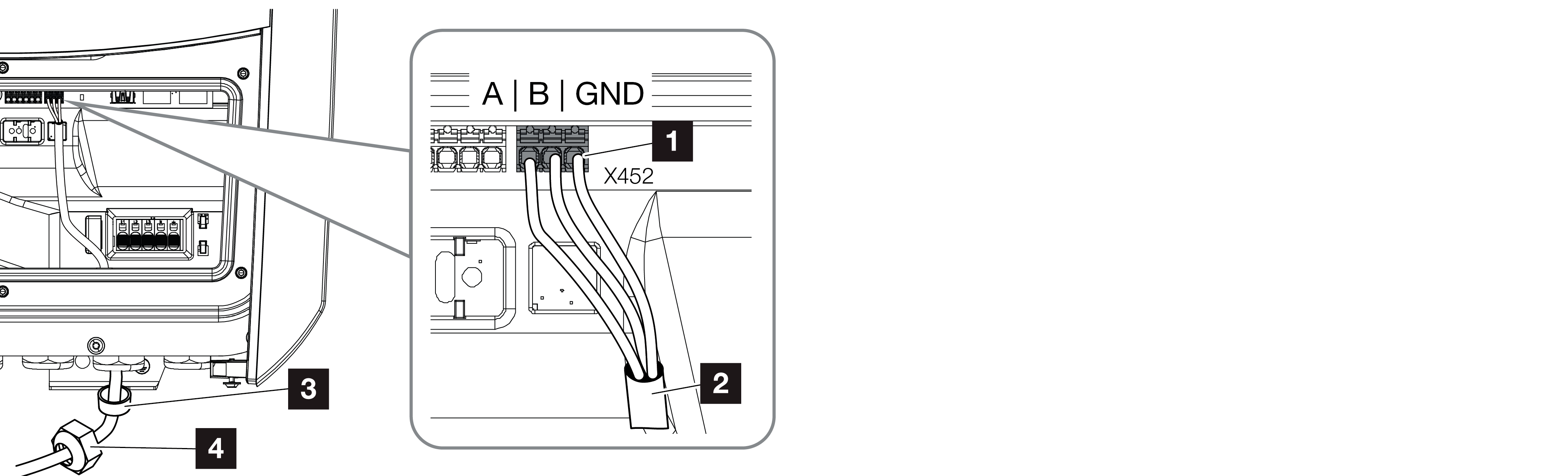 - Kabel komunikacyjny w falowniku podłączyć do złączki przyłączeniowej licznika energii.