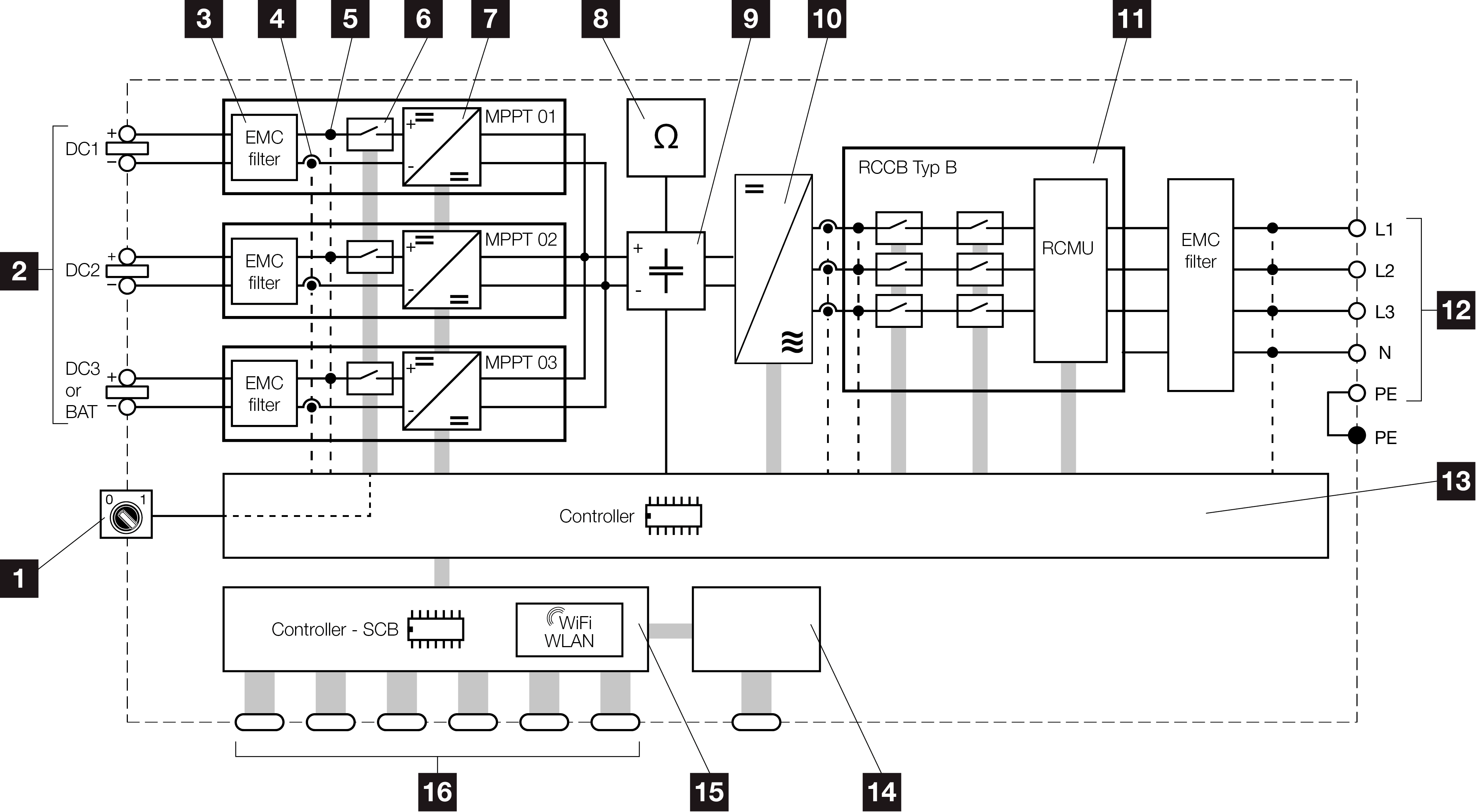 12 | 3-fazowe wyjście AC |